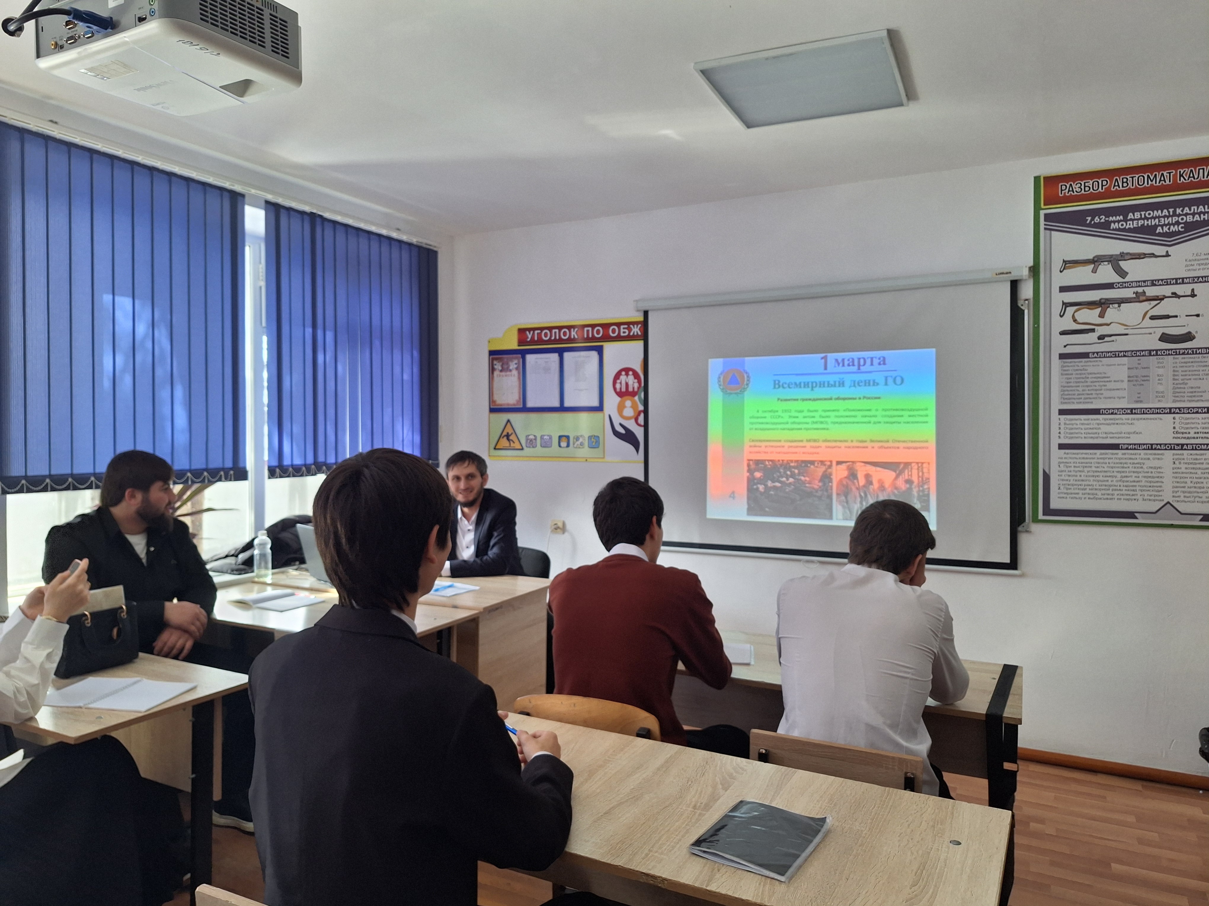 в ГБПОУ «Курчалоевский государственный колледж имени Шахида Калиева» состоялся урок, приуроченный к празднованию Всемирного дня Гражданской обороны. Урок провел преподаватель-организатор ОБЗР Саидов И.Ж.